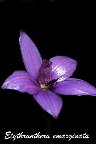 References W3 Tropicos, Kew Monocot list , IPNI ; Encyclopedia of Cultivated Orchids Hawkes 1965 photo good; Orchids of Australia Nicholls 1969 drawing fide; Rudolf Schlechter Die Orchideen 3 Auflage Bd 1 Sonderabdruck aus Schlechter Lieferung 6 321 - 384 Brieger, Maatsch and Senghas 1975; Rudolf Schlechter Die Orchideen 3 Auflage Bd 1 Sonderabdruck aus Schlechter Lieferung 6 321 - 384 Brieger, Maatsch and Senghas 1975 as Glossodia emarginata drawing fide; AOS Bulletin Vol 56 #6 1987 Postage Stamp fide;Genera Orchidacearum Vol 2 Part One Pridgeon, Cribb, Chase and Rasmussen 2001 photo fide; Rudolf Schlechter Die Orchideen Band 1C lieferung 41 pg 2565 - 2625 Brieger 2001 photo fide; Native Orchids of Australia Jones 2006 photo fide; Orchid Digest vol 71 #4 Oct, Nov, Dec 2007 photo fide; AOS Bulletin Vol 76 No 12 2007 photo fide; AOS Bulletin Vol 80 #4 2011 photo fide; Orchid Digest Vol 77 #1 2013 photo fide; Orchid Digest Vol 80 #2 2016 photo fide;