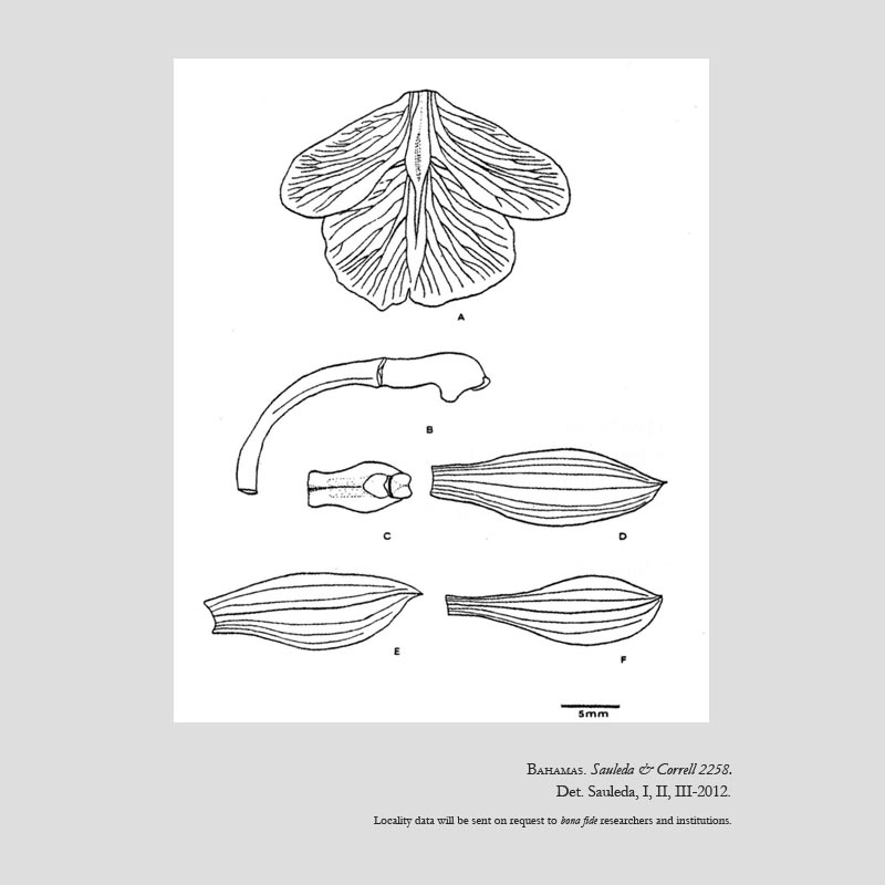 References W3 Tropicos, Kew Monocot list , IPNI ; *Orchid Digest 76[1] 44 Sauleda 2012 drawing/photo fide