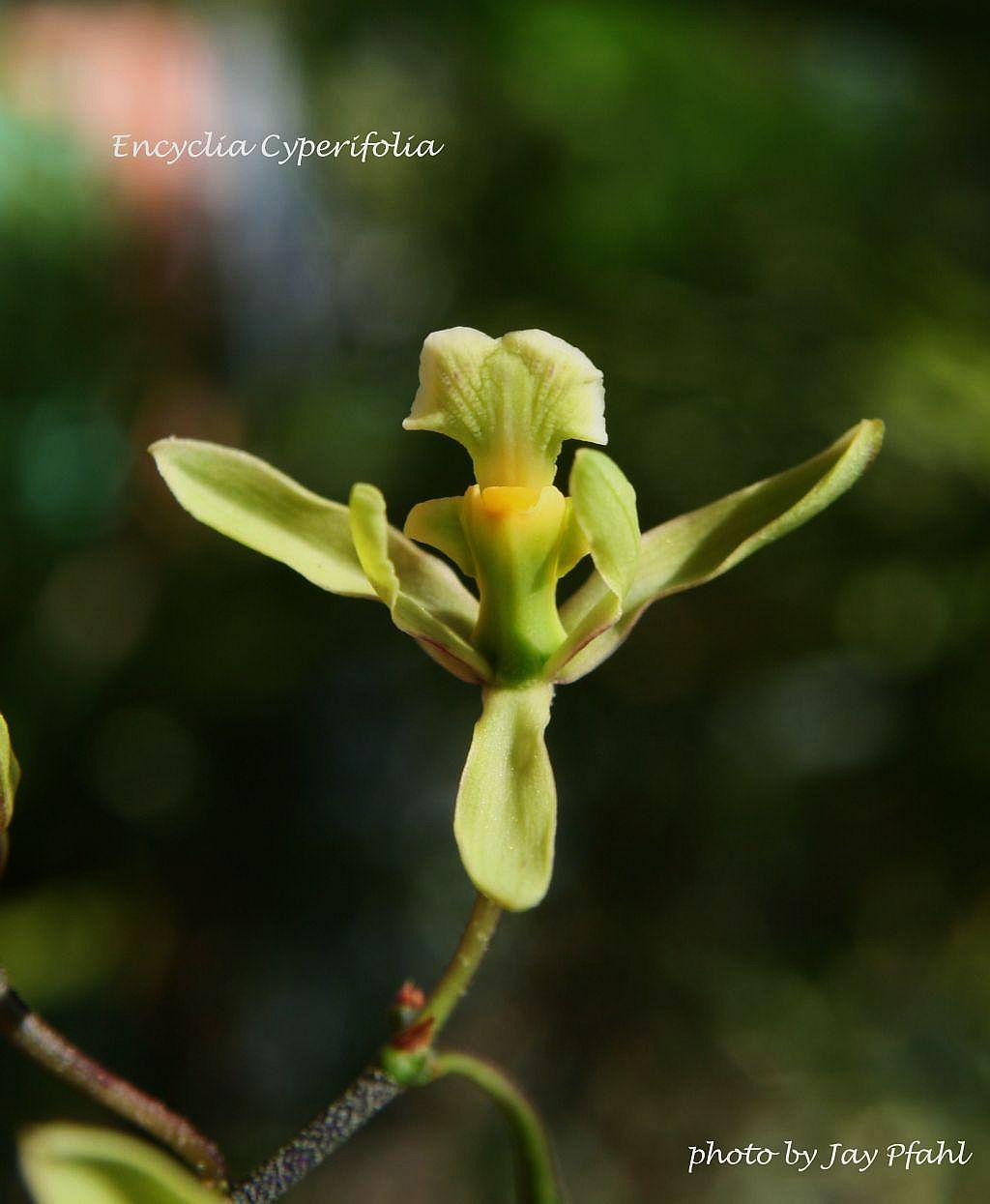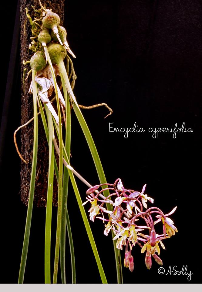 References W3 Tropicos, Kew Monocot list , IPNI ; Orchids of Peru Vol 2 Fieldiana Schweinfurth 1959 as Epidendrum cyperifolium; Fieldiana Biology, Vol 33, 1st Supple. to the Orchids of Peru Schweinfurth 1970 as Epidendrum cyperifolia; Orchidaceae Brasilenses Pabst & Dungs 1975 as E ensiformis; Icones Planetarum Tropicarum Plate 035 Benmnett & Christenson 1993 drawing ok; Cattleyas and Their Relatives Vol VI Withner 2000 photo fide; Icones Orchidacearum Brasilenses Vol I Plate 053 Castro & Campacci 2000 drawing fide; Coletanea de Orquideas Brasileiras 1 Encyclias Campacci 2003 photo good; Orchids of The Brazilian Central Plateau Menezes 2004 photo fide; The Orchids of Bolivia Vol II Laelinae Vasquez & Ibisch 2004 drawing/photo fideFlora of Ecuador No 87 225[3] Orchidaceae Dodson & Luer 2010 drawing good; Las Orquideas del Peru Izerskyy & Bezverhov 2011 photo fide