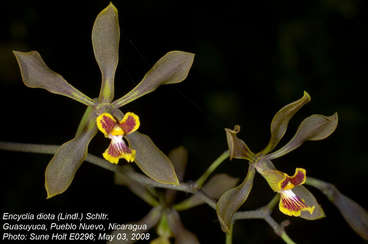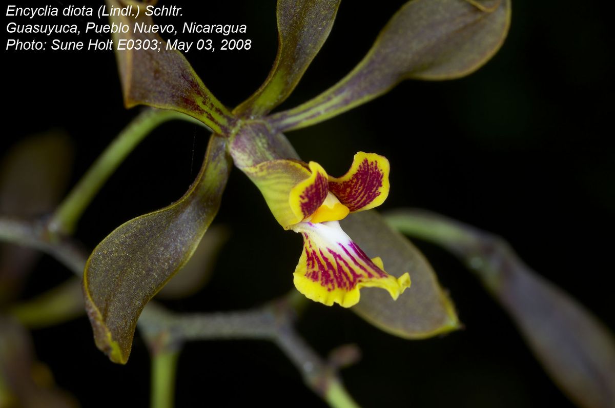 Synonyms Encyclia diota ssps diota Dressler & Pollard 1974; Encyclia insidiosa (Rchb. f.) Schltr. 1920; *Epidendrum diotum Lindl. 1843; Epidendrum insidiosum Rchb. f. 1876