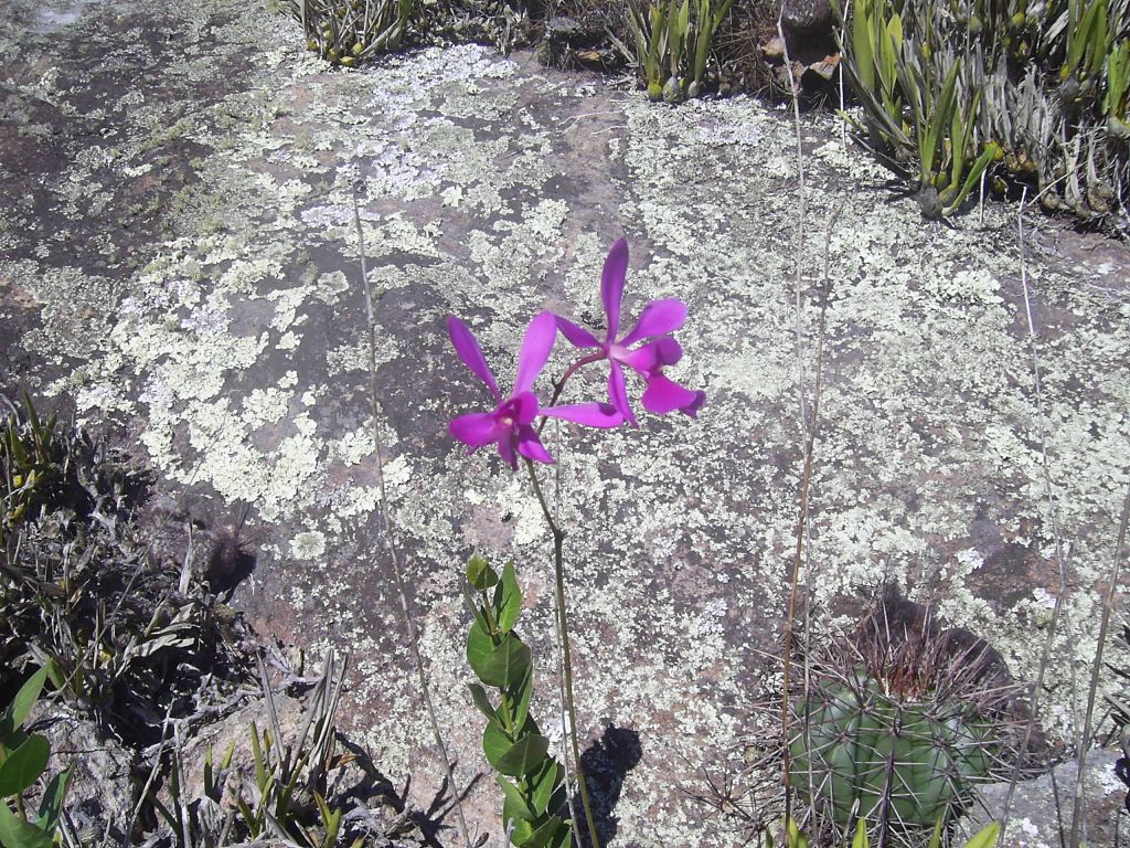 Endemic to Bahia State in northeastern Brazil on rocks or low on Vellozia bushes at elevations of 300 to 700 [1500] meters as a small sized, hot to cool growing lithophyte with conic, elongate pseudobulbs enveloped in youth by imbricate, deciduous sheaths and carrying 2 apical, erect, coriaceous, smooth, narrowly lanceolate, obtuse leaves that blooms in the later spring on a terminal, erect, racemose, 16 to 24" [40 to 60 cm] long, to 6 sequentially flowered inflorescence opening from the base towards the top with flowers that have no discernable scent.