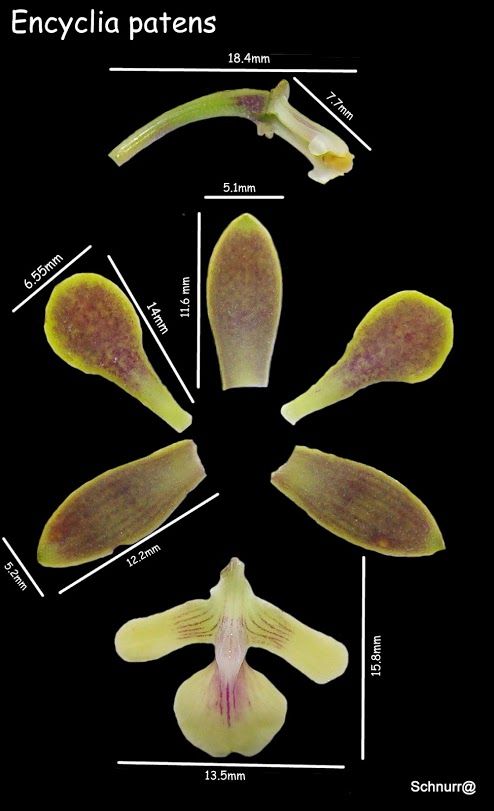 References W3 Tropicos, Kew Monocot list , IPNI ; Die Orchideen Schlechter 1915 as E odoratissima; Repert. Spec. Nov. Regni Veg. Beih. 6: 71 Schlechter 1919 as Epidendrum patens; The Genus Epidendrum Ames 1936 as Epidendrum patens; Encyclopedia of Cultivated Orchids Hawkes 1965 as Epidendrum odoratissima; AOS Bulletin Vol 35 No 6 1966 as Epidendrum odoratissimum photo fide; Flora of the Lesser Antilles Garay & Sweet 1974 as Epidendrum patens drawing good; Orchidaceae Brasilenses Pabst & Dungs 1975 as E odoratissima drawing ok; Die Orchideen 3 Auflage Bd 1 Sonderabdruck aus Schlechter Lieferung 10 576 - 632 Brieger, Maatsch and Senghas 1977 as E odoratissima photo ok; Orchid Digest Vol 55 No 3 1991 photo fide; A Guide to Orchids of the World Hodgson, Paine and Anderson 1991 as E odoratissima photo fide; Orchid Digest Vol 56 No 4 1992 as Epidendrum tripartitum drawing fide; Orchid Digest Vol 56 No 4 1992 photo fide; Orchids of Brazil McQueen 1993 photo good; Orchids of the High Mountain Atlantic Rainforest in SE Brazil Warren & Miller 1994 as E odoratissima drawing ok; Icones Orchidacearum Brasilenses Vol I Plate 069 Castro & Campacci 2000 drawing ok; Cattleyas and Their Relatives Vol VI Withner 2000 photo fide; Botanicas Orchids Laurel Glen 2002 photo fide; Coletanea de Orquideas Brasileiras 1 Encyclias Campacci 2003 photo good; Orquideas Da Chapada Diamantina Brito & Cribb 2005 drawing/photo fide; The Organ Mountain Range Its History and its orchids Miller, Wareren, Miller and Seehawer 2008 as E odoratissima photo good; Orchids of French Guiana Szlachetko, Veyret etal 2014 as E odoratissimadrawing/photo fide; Orchidees Du Bresil As Orchideas da Serra Do Castello Vol 3 Chiron & Bolsanello 2013 drawing/photo fide; AOS Bulletin Vol 85 #3 2016 drawing fide; AOS Bulletin Vol 85 #3 2016 as Epidendrum odoratissimum drawing fide;