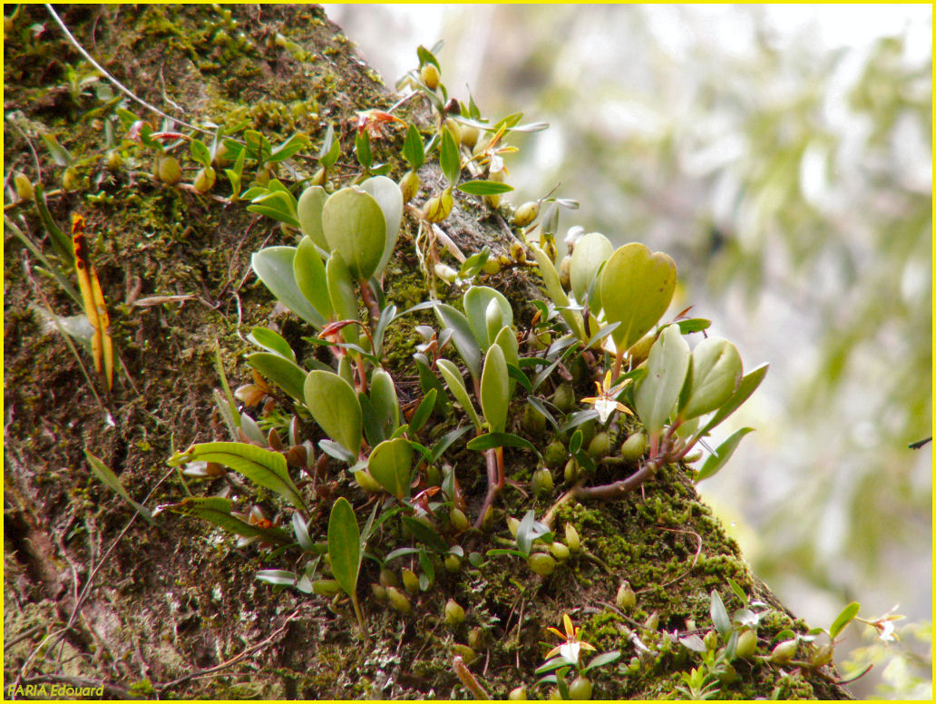Found from Mexico, Guatemala, Belize, El Salvador, Honduras, Nicaragua, Panama and also in Jamaica and Cuba, in humid mixed forests on oaks as a mini-miniature sized, warm to cold growing epiphyte or lithophyte, at elevations of 600-3200 meters, with ovoid to narrowly ovoid, laterally compressed, yellow-green pseudobulbs carrying 1 to 3, towards the apex, elliptic-lanceolate to elliptic-ovate, retuse leaves that blooms from fall to early spring on a single flowered, apical, 1/2" to 1 1/5" [1.25 to 3 cm] long inflorescence subtended by a slender spathe and arising from the apice of the mature pseudobulb and carrying a large fragrant sandalwood to clove scented flower.