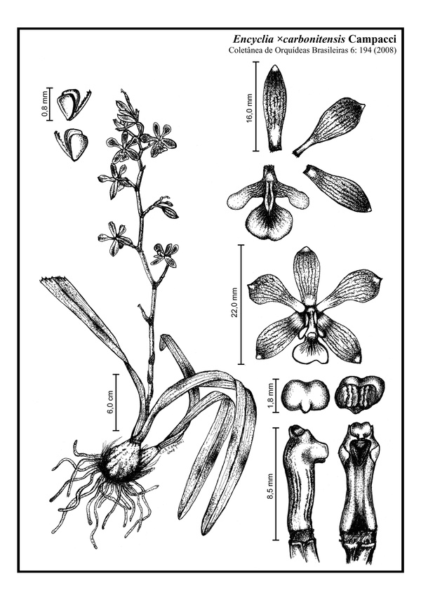 Encyclia × carbonitensis Campacci 2008 Drawing by © Campacci and The Swiss Orchid Foundation at the Jany Renz Herbaria Website