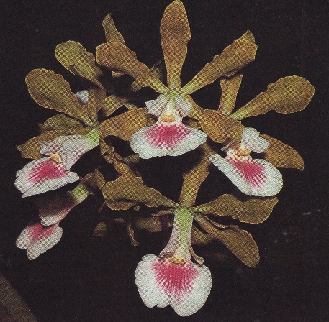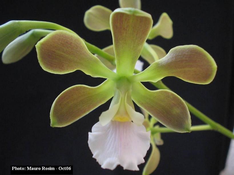 Found as a small sized, hot to cool growing, bifoliate epiphyte in Minas Gerais, Goias, Rio De Janiero, Sao Paulo and Espirito Santo states of Brazil at elevations of 400 to 1200 meters in Atlantic coastal rainforests and the central plateau with ovate-elongate pseudobulbs enveloped basally by several imbricating, evanescent leaf sheaths and carrying 2 to 3, apical, coriaceous, smooth, narrowly lanceolate, cymbidiform leaves that blooms in the spring in Brazil on a profusely branched, erect, to 3' [90 cm] long, loosely many [30] flowered inflorescence with lanceolate clasping stem bracts and very fragrant, long-lasting flowers.