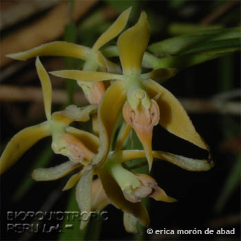 References W3 Tropicos, Kew Monocot list , IPNI ; Repertorium Specierum Novarum Regni Vegetabilis 7: 243. Schlechter 1920; Repertorium Repert. Spec. Nov. Regni Veg. Beih. 9: 88 Schlechter Peru Schlechter 1921 as E melinoacron; Repert. Spec. Nov. Regni Veg. Beih. Figuren-Atlas 57: 468 Schlechter 1929 as E melinoacron drawing fide; Orchids of Peru Vol 2 Schweinfurth 1959; Flora de Venezuela Vol XV Tercera Parte Foldats 1970 drawing fide; Icones Orchidacearum Peruviarum Plate 444 Bennett & Christenson 1998 drawing fide to first photo; Orchid Species of Peru Zelenko Bermudez 2009 as E sp Pg 134 photo fide; Orquideas, Tesoro de Colombia Vol 2 Ortiz & Uribe 2017 photo fide;