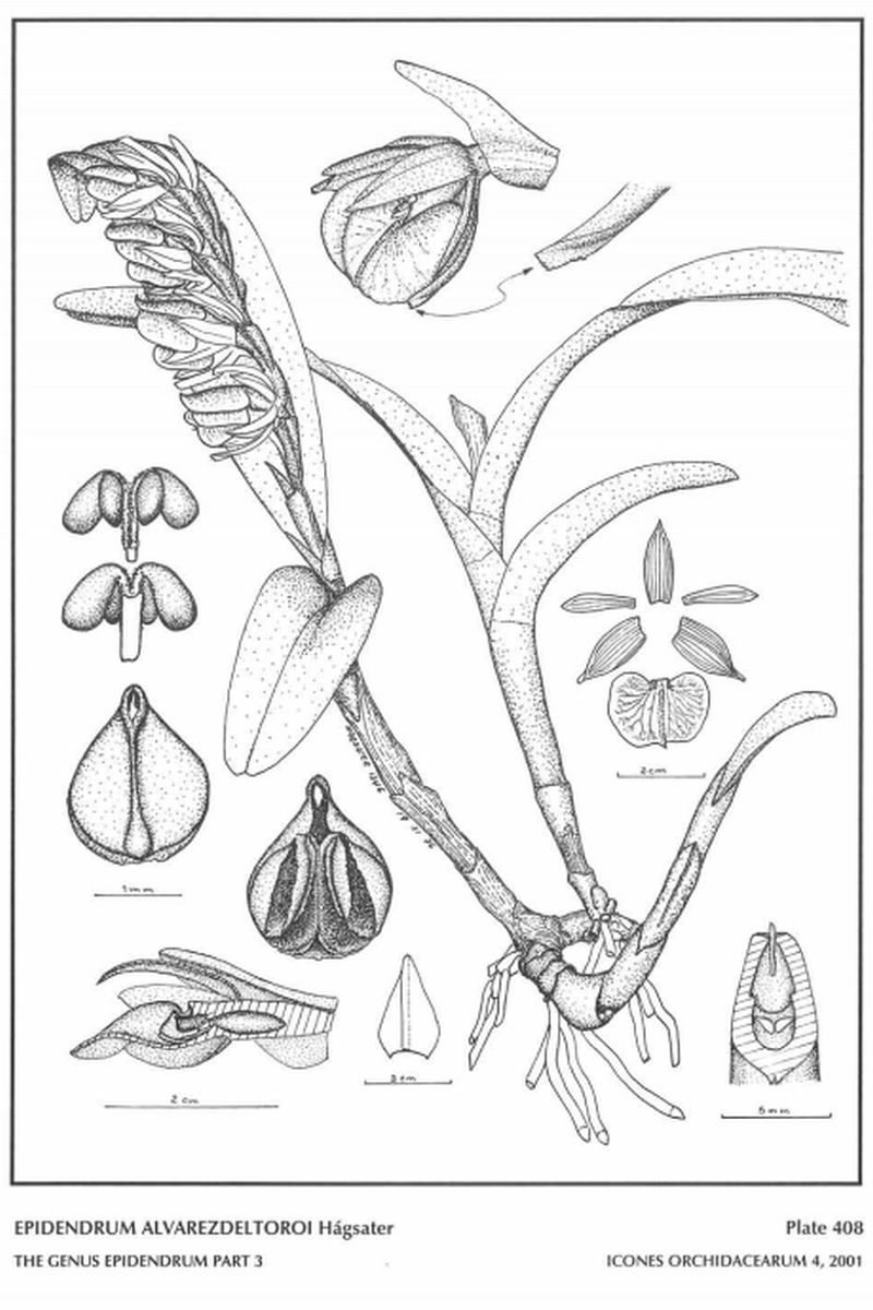 Epidendrum alvarezdeltoroi Hágsater 2001 GROUP Spathiger SUBGROUP Coriifolium