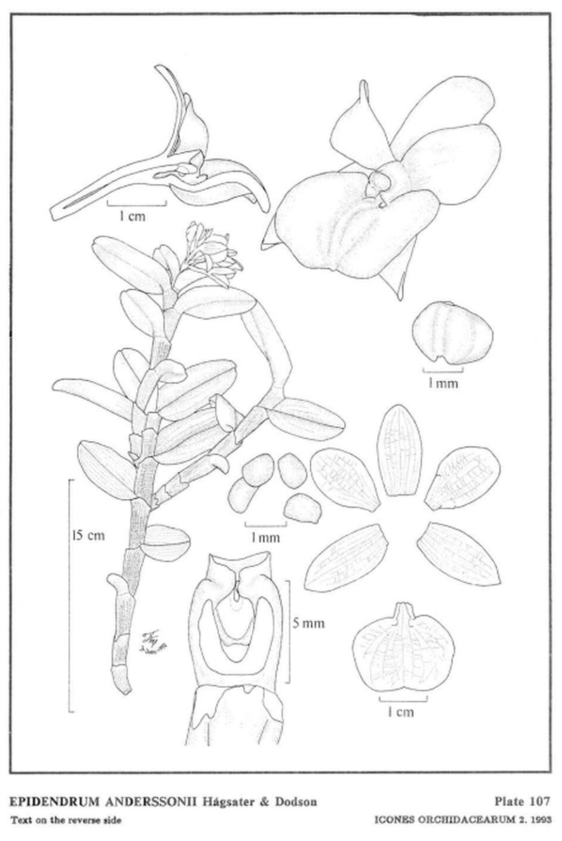Hagsater in his assesment of the species in Icones Orchidacearum 12 Plate 1225 Hagsater 2009 included E andersonii as a synonym of E colombianum but in a personal communication [5 2017] he stated "that is what we thought 8 years ago based on herbarium specimens, but now that I have seen live material in flower again in Ecuador, I am not too sure and would like to discuss this with Elizabeth Santiago, but we have not gotten down to it." I have had the 2 species separate all along.