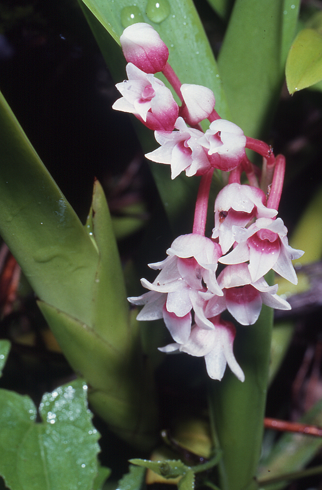 Found in the Solomon Islands, Fiji, Samoa and Vanuatu on trees in montane mist forests at elevations above 1000 meters as a cool growing epiphyte