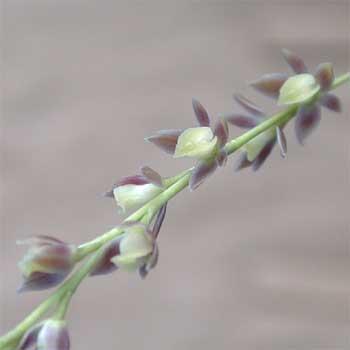 "Epidendrum carolii is the type for GROUP Carloii characterized by the caespitose habit, short, unbranched, laterally compressed stems carrying thick, coriaceous, leaves and has a long, rat-tail-like, arching, nutant with basal long bracts and carrying many successively opening flowers. This species is recognized by the small plants, 5.2 to 14" [13 to 35 cm] tall, with simple stems 1.2 to 3.6" [3 to 9 cm] high, the 2 to 3 ovate to narrowly elliptic leaves, arcuate, several to many flowered inflorescence, and small, succulent flowers with greenish-brown to orange-brown sepals and petals and yellow lip. Its closest relative is E laucheanum and both have the same habit and flower structure but it is a much larger plant, with long, acuminate leaves." Hagsater etal 1990