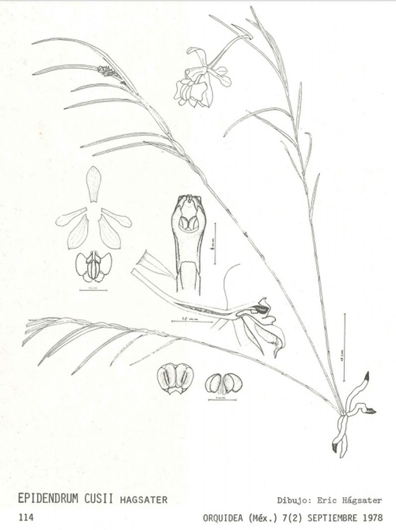 References W3 Tropicos, Kew Monocot list , IPNI ; *Orquídea (Mexico City), n.s., 7: 107 Hagsater 1978 drawing/photo fide; Icones Orchidacearum Epidendrum Part 1 Plate 29 Hagsater 1990 drawing fide; Orquídea (Méx.) 12(2): 131-138. Garcia Cruz 1992 drawing fide