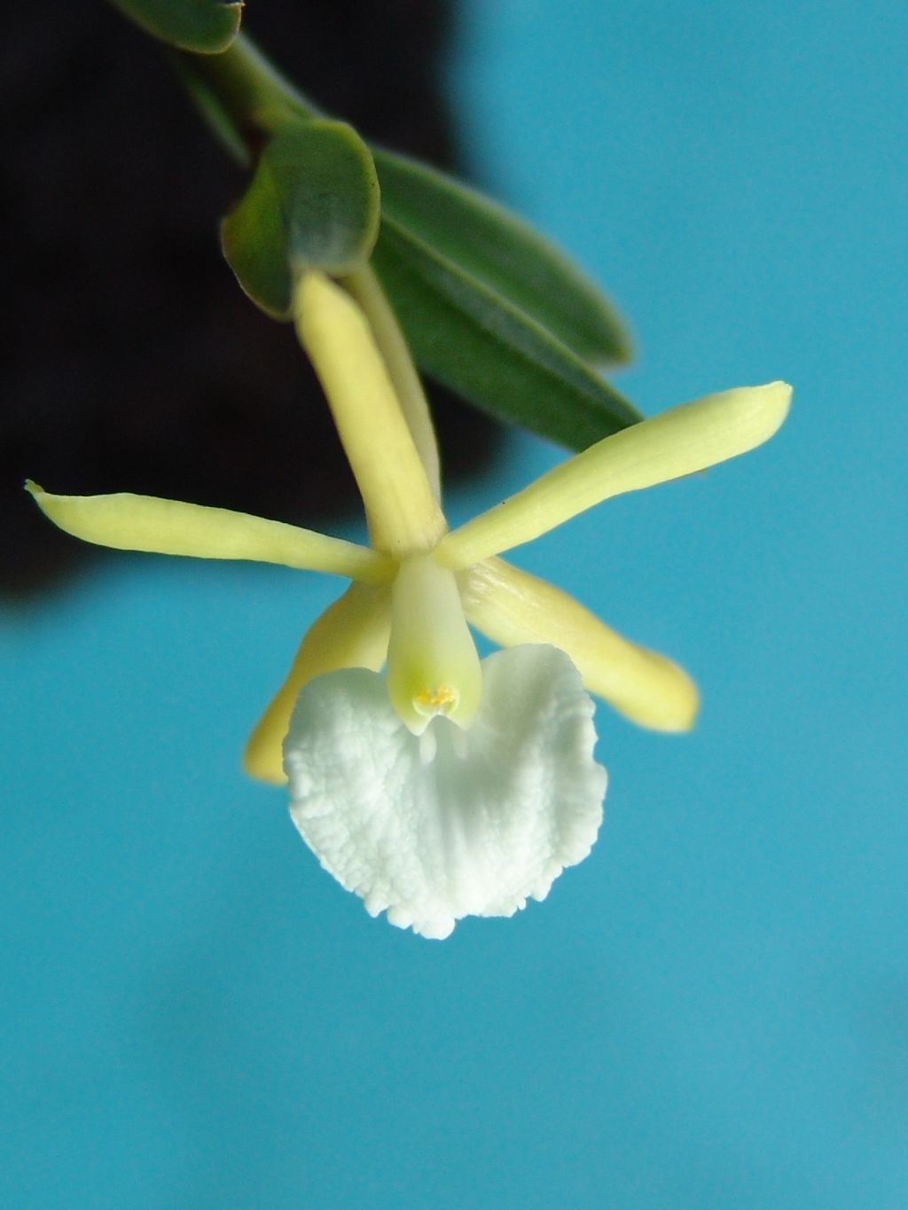 Found in Tolima department of Colombia at elevations of 2000 to 2600 meters as a mini-miniature sized, cold growing epiphyte with branched, terete stems enveloped by tubular sheaths and carrying 2, fleshy, elliptic, acute leaves that blooms in the fall on a terminal, .8" [2 cm] long, [probably successively] single flowered inflorescence.