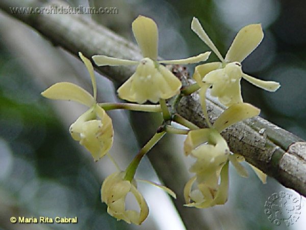 Found in southeastern Brazil as a medium to giant sized, warm growing that blooms from nodes [much like Dendrobium] laterally on the bare stem and not terminally.