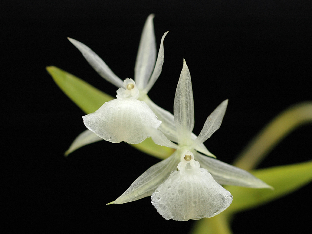 Many references cite E dentiferum with light green flowers, linear petals and a sub-orbicular lip, as a synonym of E jejunum but it has white flowers with rhombic to oblanceolate petals and a cordiform lip.