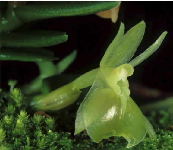 Found in Colombia without locality and northern Ecuador on the westgern slope of the Andes at elevtions of 1400 to 2000 meters as a cool growing, caespitose, sympodial epiphyte with cane-like, simple, laterally compressed, somewhat reclining stems carrying 4 to 7, distichous, spreading, fleshy-coriaceous, articulate, pale green to reddish, sheath tubular, blade narrowly lanceolate, semi-terete, acute, margin entire, slightly involute leaves that blooms in the late spring and early fall on a terminal, very short, sessile, single-flowered inflorescence with shorter than the ovary, triangular floral bracts and carrying a resupinate flower.