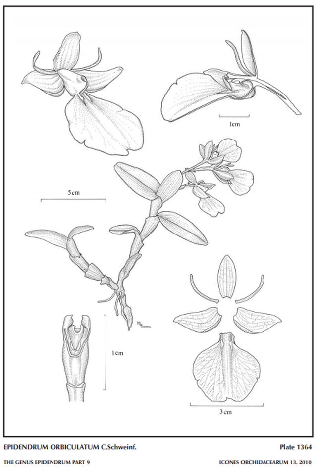 Epidendrum orbiculatum C.Schweinf. 1943 GROUP Megalospathum SUBGROUP Cupreum