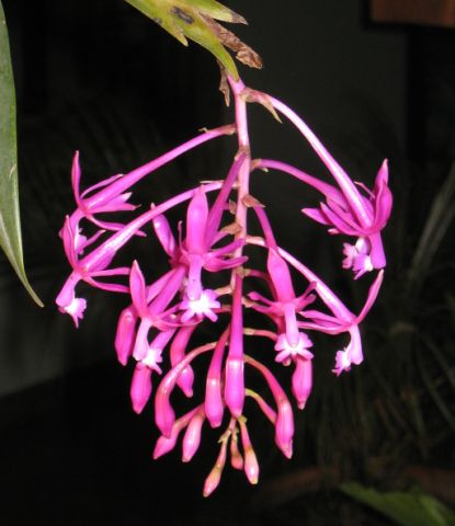 Found in Bolivia in wet montane forests at elevations of 1300 to 1800 meters as a medium to large sized, cool growing, reed stem epiphyte or terrestrial with an erect, strict to substrict stem enveloped completely by leaf bearing sheaths and carrying erect-patent, ligulate to sub-lanceolate, ligulate, obliquely obtuse, coriaceous, glabrous leaves that blooms in the fall and winter on an arching to pendant, 8 to 10" [20 to 25 cm] long, laxly several flowered inflorescence enveloped by several imbricating bracts.