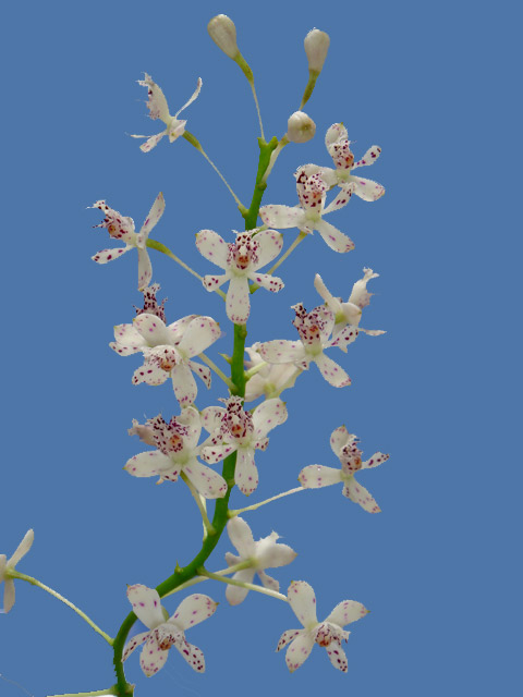 "Epidendrum elegantissimum belongs to the GROUP Mancum SUBGROUP Mancum, which is characterized by the sympodial growth, narrow spathaceous bracts with parallel sides, erect raceme with nonresupinate flowers and a generally reduced, fleshy lip. The species has terete stems, somewhat large, white flowers, with purple dots on the lip, oblanceolate to spatulate petals, lateral lobes of the lip progressively lacinate; midlobe emarginate, the apical margin deeply lacinate, column straight to somewhat arcuate." Hagsater etal 2008