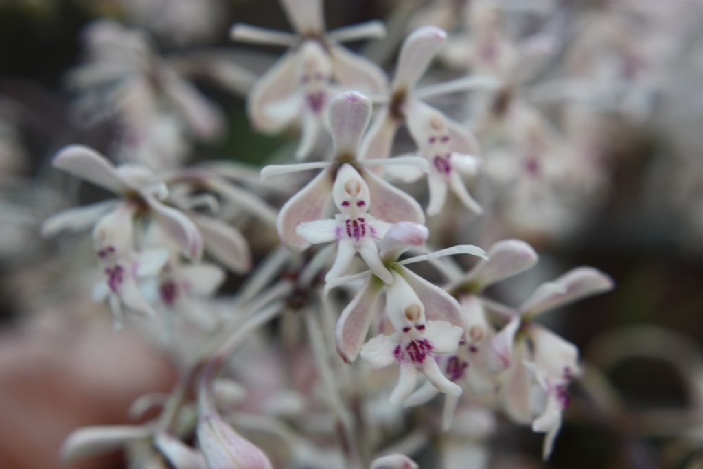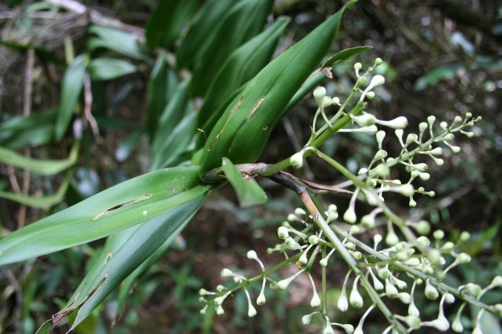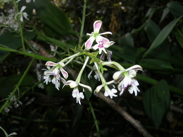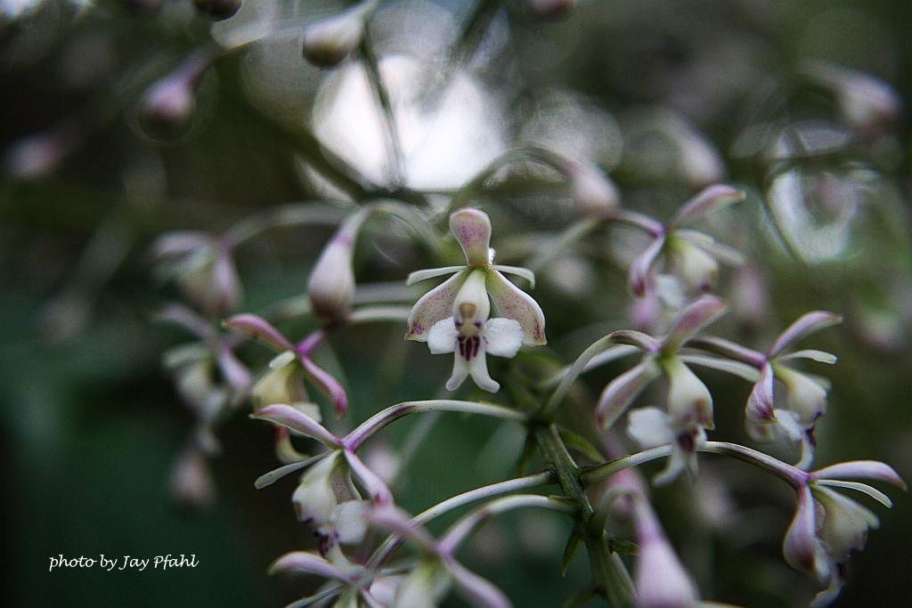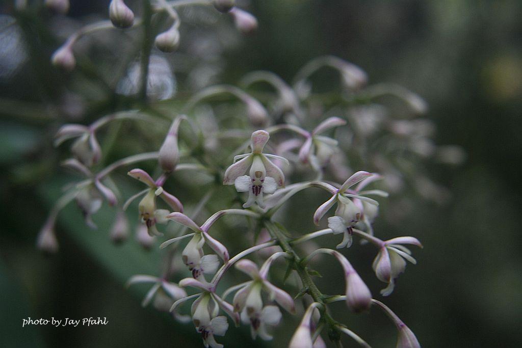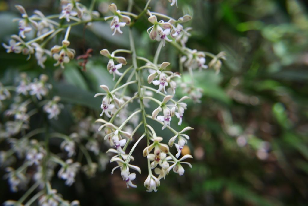 This species has white pedicels and a white back to the flowers which makes it very noticable in the forest as well as its very strong fragrance that can be detected from several meters away.