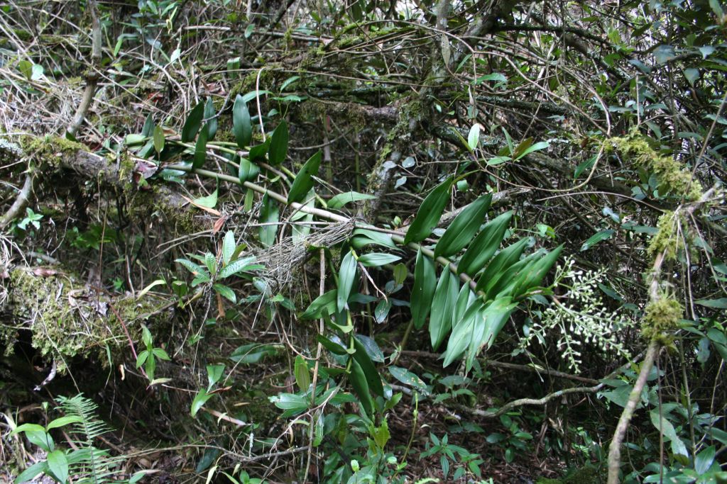 Found in Cundinamarca, Quindio and Putomayo departments of central and southern Colombia at elevations around 2700 to 3000 meters as a large to giant sized, cold growing terrestrial with simple, cane-like, laterally compressed, erect, straight stems carrying 9 to 12, alternate, articulate, suberect, spreading, oblong-elliptic, acuminate leaves that blooms in the spring and again in the earlier fall on a terminal, arising through a narrow spathe, paniculate, suberect, 10 to 12.8" [25 to 32 cm] long including the laterally compressed peduncle enveloped almost completely by 2 to 3, tubular, narrowly triangular, acuminate, short bracts, simultaneously to 180 flowered inflorescence with shorter than the ovary, narrowly triangular, acuminate, amplexicaul floral bracts.