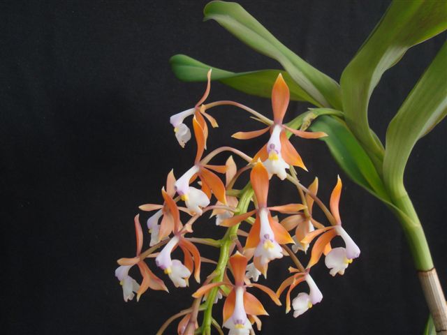 Found in Oaxaca Mexico, Guatemala and El Salvador in oak and pine forests often in cloudy conditions at elevations of 1780 to 2500 meters as a cool to cold growing epiphyte or lithophyte with a simple, terete, straight, cane-like stem arising from the middle internode of the previous stem and carrying 3 to 6, aggregate towards the apex of the stem, alternate, articulate, subcoriaceous, smooth, green, margin entire, narrowly elliptic, acute leaves that blooms in the fall through spring on a terminal, occuring only once, racemose, arching, laterally compressed basally, simultaneously 12 to 32 flowering inflorescence with somewhat less than half the length of the ovary, triangular, acuminate floral bracts and carrying nocturnally, sweetly fragrant flowers.