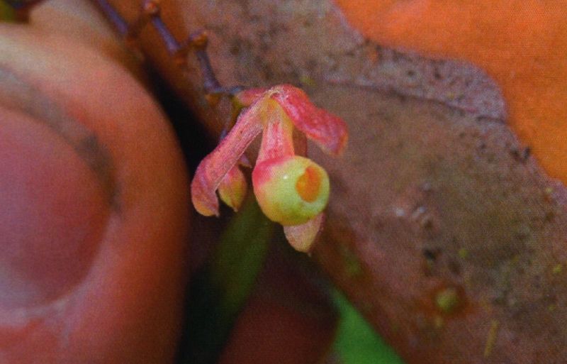 Found in Choco, Antioquia and Valle de Cauca departments of Colombia within bushes at elevations of 1720 to 1950 meters as a small sized, cold growing terrestrial with branching, terete, thin stems carrying all along the apical half of the stem, several, narrowly lanceolate, dorsally carinate, acute, margin minutely crenate, slightly revolute leaves that blooms in the later spring through early fall on a terminal, erect, racemose to rarely paniculate, occasionally 1 branched, erect to arching, peduncle short, hair-like, with an acuminate bract towards the apex, rachis zig-zag, successively few, to 15 flowered inflorescence with nearly as long as the ovaary, gradually shorter above, triangular, acuminate floral bracts and carrying distichous, reddish outside, pale green inside flowers.