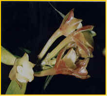 Found in Peru on both sides of the Andes at elevations of 2300 to 3400 meter as a small to medium sized, cold growing terrestrial with cane-like, terete, erect, straight, branching subapically when mature stems carrying numerous, throughout the stems, sub-erect, alternate, articulate, coriaceous, green, margins purple-black, oblong, rounded apically, slightly bilobed leaves that blooms in the late spring through winter on an apical, terete, thin, racemose, occuring only once, arching-nutant, densely many [15 to 17] flowered inflorescence carrying resupinate, simultaneously opening, fleshy