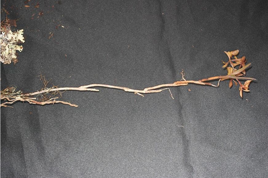 "Epidendrum laxicaule D.E.Benn. & Christenson belongs to the GROUP Arbuscula SUBGROUP Incomptum which is characterized by the pendent pants, branching, stems laterally compressed to ancipitose, wide, leaves comparatively short, with short, racemose, few-flowered inflorescences, flowers large, lip with very prominent ribs. E laxicaule is very similar to Epidendrum megalopentadactylum , but the leaves are linear, semi-terete, and the flowers are smaller and green, sepals 1.04 to 1.48" [26 to 32 mm] long, and lateral ridges of the lip are divided into 3 to 4 ridges on each side of the mid-ridge. The plants at first sight, are reminiscent of a very long stem of the Christmas Cactus, Schlumbergera sp. with complanate stems. Epidendrum megalopentadactylum has large, pendant plants, with ancipitose stems, and reclining, distichous, fleshy, narrowly lanceolate leaves, flowers large, sepals 1.48 to 1.6" [37 to 40 mm] long, star-shaped, white, sepals faintly tinged pink, petals greenish white, lip with a very prominent 5-ribbed callus, reminiscent of a closed fist of 5 bulging fingers. There is a third species with similar vegetative habit, but presently only known from a single digital photo provided by Ricardo Fernández in 2014." Hagsater etal 2018.