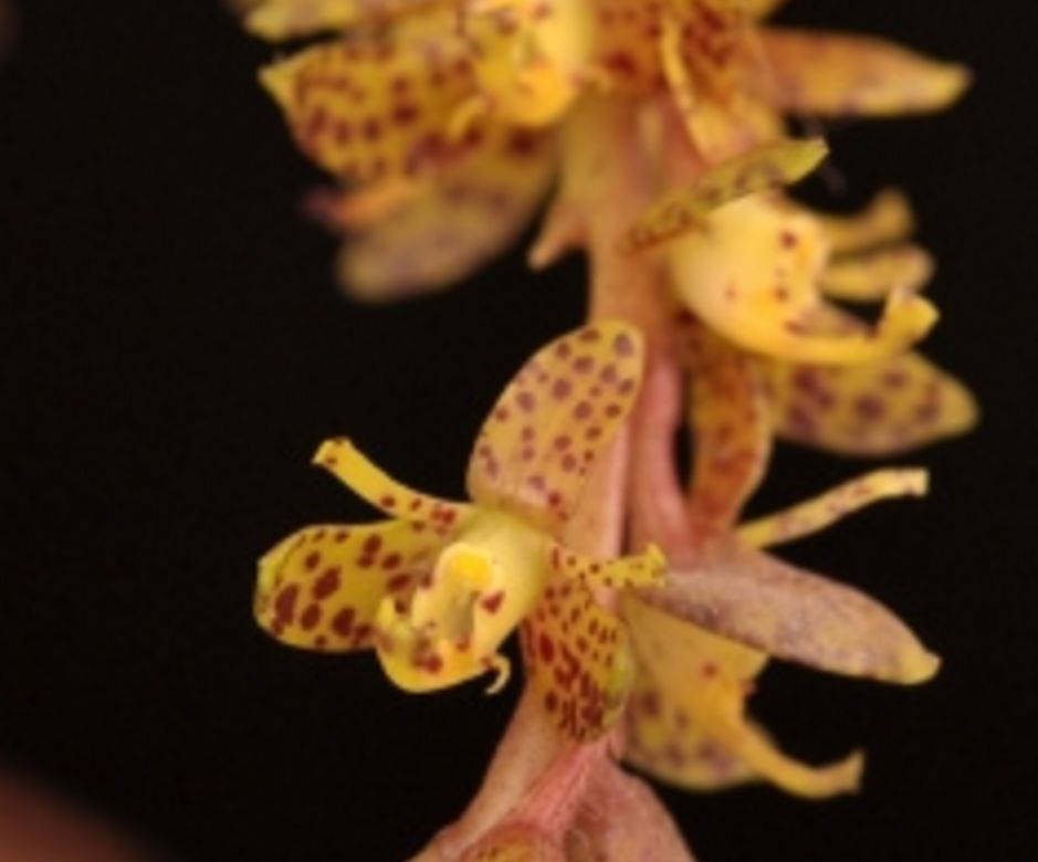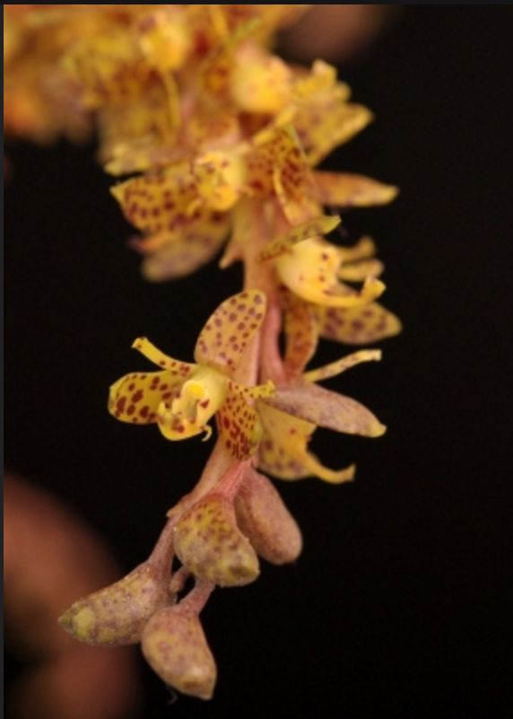"Epidendrum leopardihamatum belongs to the GROUP Mancum SUBGROUP Stenoglossum which is characterized by the terete stem with 1 to 2 apical leaves,