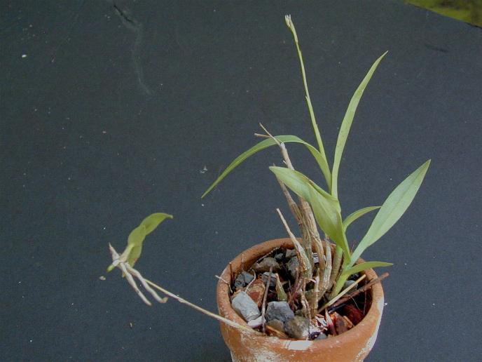 Found only in Mexico in the state of Jalisco as a miniature sized, warm growing lithophyte on cliffsides or on large rocks near streams at elevations of 800 to 1500 meters with elongate, fusiform stems carrying 3 to 6, linear-lanceolate, acute, thin leaves graduating in size from smallest at the bottom that blooms on a simple, many [15] flowered inflorescence with long-lasting, successively opening flowers occuring in the summer and fall. This species has an elongating inflorescence with each flower arising days after another and can form keikis on old stems so do not cut them. They can be removed and mounted on their own after they have 3 pseudobulbs formed.