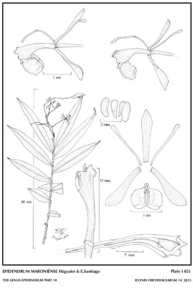 Epidendrum maroniense Hágsater & E.Santiago 2013 GROUP Pseudepidendrum SUBGROUP Pluriracemosum TYPE Drawing by © O Perez and The AMO Herbaria Website