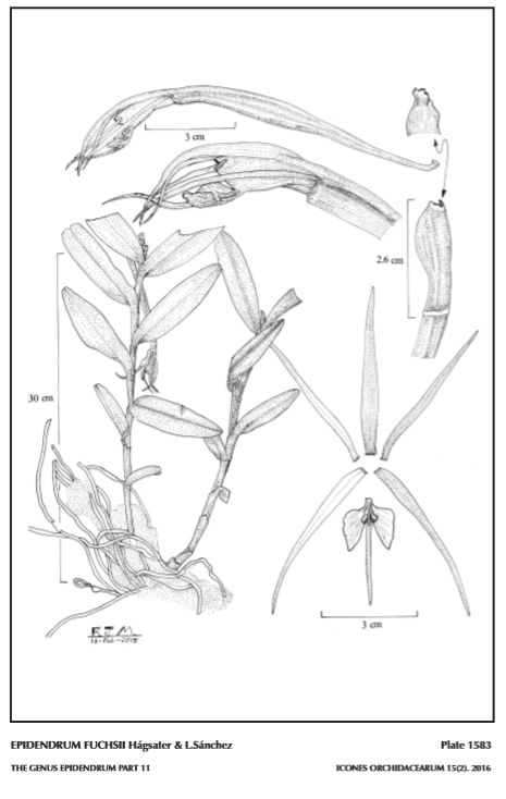 Common Name The New E fuchsii Epidendrum [New name to correct the incorrect name E fuchsii Hagsater etc 2016 which originally was named In honor of Hans Peter Fuchs-Eckert (1928-1999), Swiss botanist and pteridologist, who collected the type.]