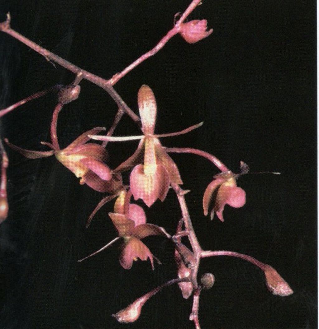 Found in Bolivia at elevations of 200 to 300 meters as a hot growing epiphyte with a new stem arising from the lower 1/4 of the previous, somewhhat swollen, 5 internoded stem carrying 2, apical, ovate, obtuse, narrowing below in to the sessile base leaves that blooms in the late summer and fall on an erect, terminal, 3" [7.5 cm] long, few flowered inflorescence.