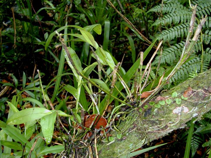 Found in Florida, Bahamas, Puerto Rico, Windward Islands, Leewards Islands, Haiti, Dominican Republic, Cuba, Jamaica, Cayman Islands, Trinidad & Tobago, Mexico, Guatemala, Belize, El Salvador, Honduras, Nicaragua, Costa Rica, Panama, Colombia, Venezuela, Guyana, Fr Guiana, Surinam, Brazil, Peru and Bolivia in wet montane forests as a large sized, reedstem, hot to cool growing epiphyte at elevations of 100 to 2000 meters, but at higher elevations it is found on rocks in leaf detrius, with a leafy, compressed, erect stem enveloped basally by a few tubular, scarious, acuminate sheaths and carrying leathery, linear-oblong to oblong-ligulate, sessile, acute leaves held towards the apex of the stem that blooms in the summer through fall with a terminal, to 3/4" [2 cm] long, occassionally branched, 1 to few flowered raceme which can produce flowers for more than one season, giving rise to, fragrant eucalyptus to anise scented [often nocturnally], large, showy, successively opening flowers occuring over months on newly mature and older pseudbulbs.