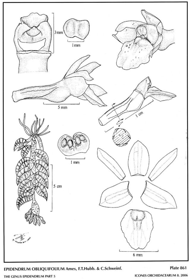 Epidendrum obliquifolium Ames, F.T.Hubb. & C.Schweinf. 1935 GROUP Megalospathum SUBGROUP Tigriphyllum