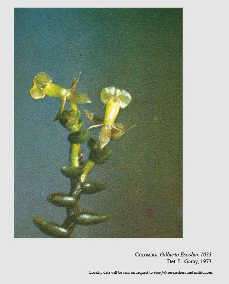 References W3 Tropicos, Kew Monocot list , IPNI *Orquideología 8(3): 182. Garay 1973 photo fide; Venezuelan Orchids Illustrated Vol 6 Dunsterville & Garay 1976 drawing fide; Orchids of Venezuela, An Illustrated Field Guide Vol 1 Dunsterville & Garay 1979 drawing fide; Native Colombian Orchids Vol 5 COS 1994 photo fide; Orchids of Venezuela [An illustrated field guide] Vol. 1 Ramiro and Carnevali 2000 drawing fide; Flora of the Venezuelan Guayana Vol 7 Steyermark, Berry, Yatskievych and Holst 2003; Orquideas, Tesoro de Colombia Vol 2 Ortiz & Uribe 2017 drawing/photo fide;