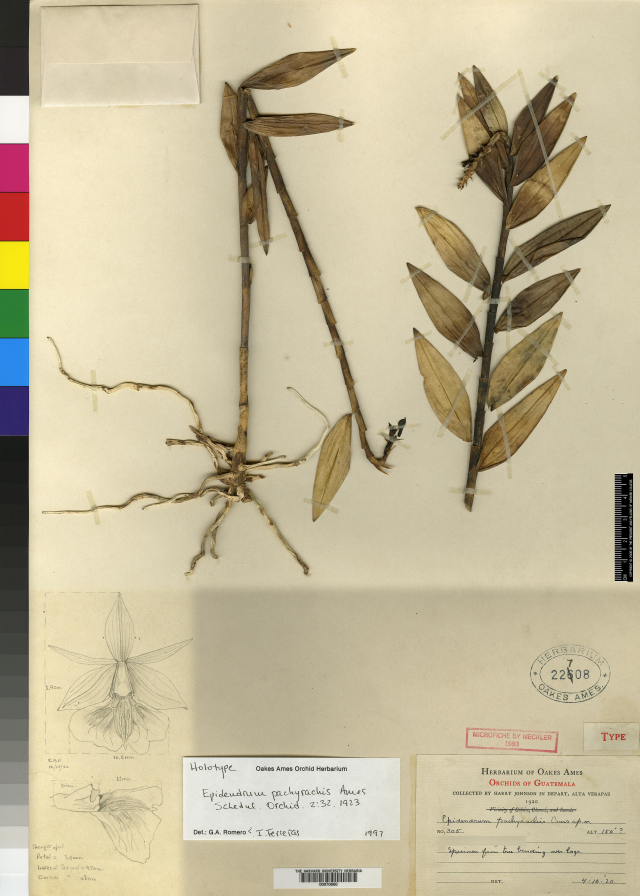 References W3 Tropicos, Kew Monocot list , IPNI ; The Genus Epidendrum Ames 1936; Manual de las Plantas de Costa Rica Vol 3 Hammel, Grayum, Herrera and Zamora 2003; Icones Orchidacearum 11 Plate 1152 Hagsater & Sanchez 2008 Drawing fide; Orchid Genera and Species in Guatemala Archila, Szlachchetko, Chiron, Lipinska, Mystkowska and Bertolini 2018