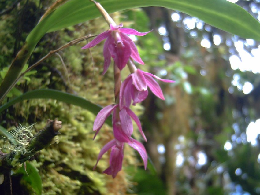 Found in Costa Rica and Panama in montane forests at elevations of 1400 to 3400 meters as a small to just medium sized, cool to cold growing epiphyte or rarely terrestrial with erect, simple, canelike, laterally compressed, ancipitose, thin at the base, thickening towards the apex, slightly arching stems enveloped almost completely by scarious, non-foliaceous, ancipitose, slightly inflated towards the apex sheaths and carrying 1 to 2, aggregate at the apex of the stem, articulate, alternate, ascending, coriaceous, narrowly lanceolate to oblong elliptic, acute, margin entire leaves that blooms in the later spring through the late summer on a terminal, racemose, occuring only once, alternate, arching, peduncle, thin, ancipitose, straight, with one to 2, scarious, tubular, acute bracts, lax, 3.6 to 8" [9 to 20 cm] long, simultaneously 2 to 6 flowered, inflorescence with prominent, longer than the ovary, tubular at the base, acute, amplexicaul floral bracts.