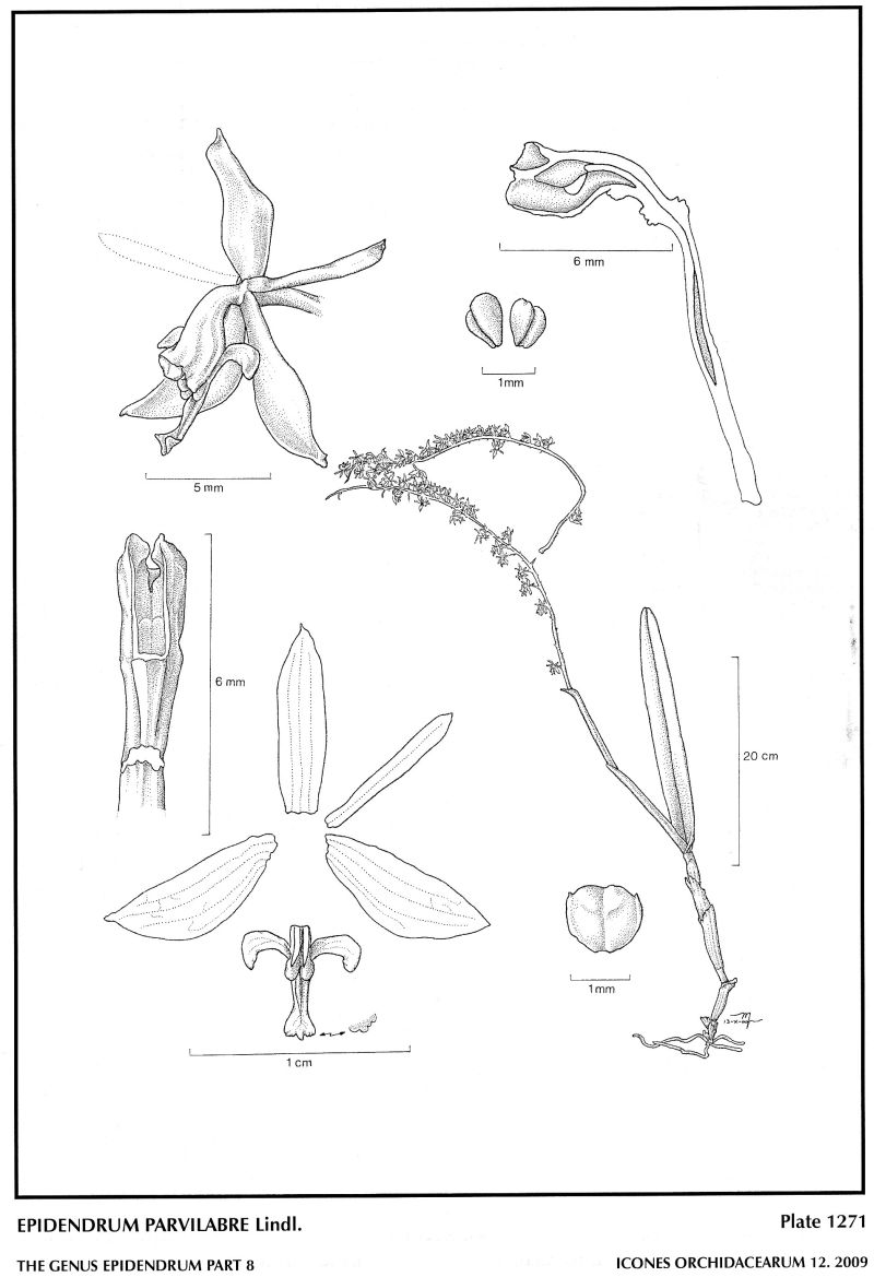 "Epidendrum parvilabre belongs to the GROUP Cylindraceum which is characterized by the sympodial habit, few-leaves stems, racemose