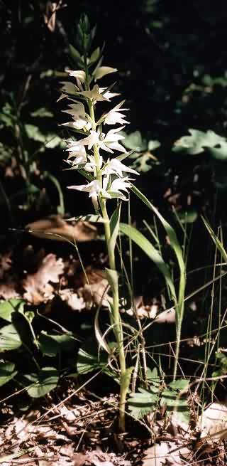 Found in Greece, eastern Aegean Islands and Turkey in open broad-leaved woodlands and pine forests up to 1200 meters in elevation as a small to large sized, cold growing terrestrial with erect, robust, grooved towards the tip stem carrying 2 to 4, short, elliptical to ovate-lanceolate, keeled, acute, rather leathery, near clasping basally leaves grading smaller into the floral bracts bracts that are still longer than the ovary and blooms in the spring on a terminal, erect, 2 to 14" [5 to 35 cm] long, 5 to 50 flowered inflorescence