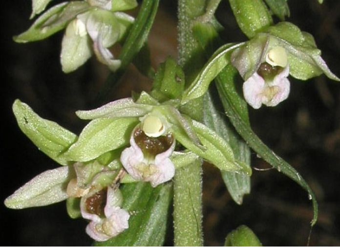 Found in Germany, Czechloslavakia, Austria, Italy, Romania, Bulgaria, Yugoslavia and Greece mixed woodlands and coniferous forests at elevations up to 1500 meters as a small to medium sized, cold growing terrestrial with a robust, dark green, sometimes washed with violet, pubescent stem carrying 4 to 8, dark green, spirally arranged, spreading-erect, narrow, arching, serrated margined cauline leaves, the lower 1 to 3, short, rounded, the median 2 to 3, lanceolate, the upper 1 to 2 bract-like leaves that blooms in the late spring and summer on a terminal, erect, elongated, to 7.2" [18 cm] long, 5 to 25 flowered inflorescence