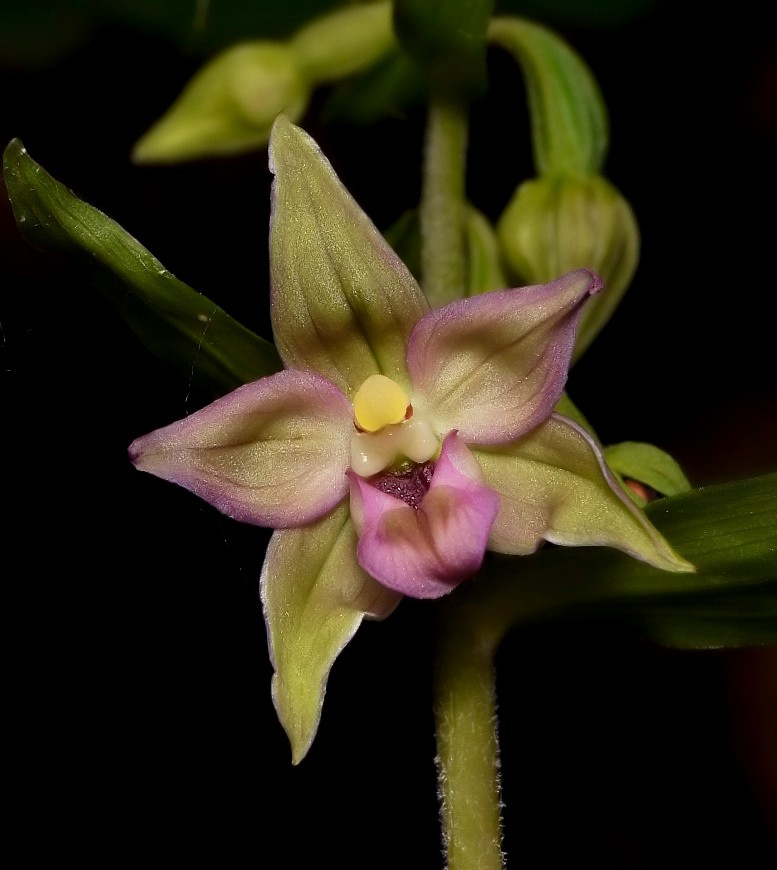 Found in central and southern Italy and Sicily in old growth beechwoods, mixed oak woodlands and chestnut woods at elevations of 500 to 1600 meters as a small to medium sized, cold growing terrestrial with spindly, flexuous stems carrying 4 to 8 cauline, rather short, often in 2 opposite rows, 3 to 5 median, spreading, green sometimes washed with violet, oval-lanceolate, 1 to 2 upper bract-like leaves that blooms in the summer on a terminal, erect, often near one sided, to 4.8" [12 cm] long, 5 to 17 flowered inflorescence.
