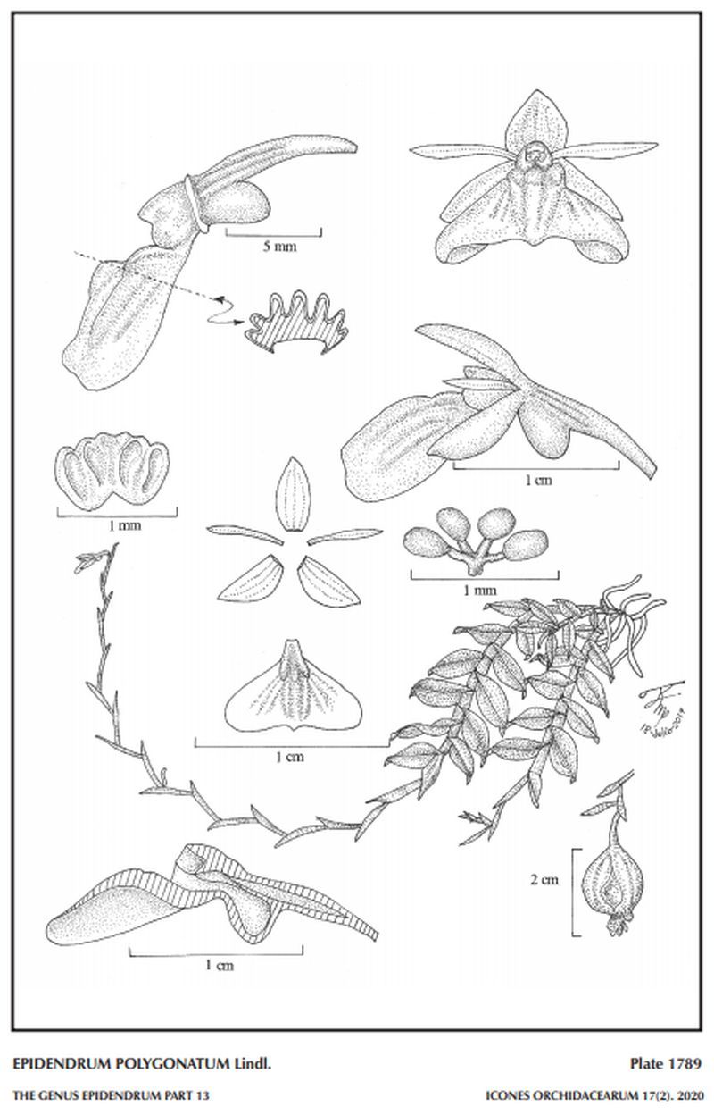 References W3 Tropicos, Kew Monocot list , IPNI ; Symbolae Antillanae Vol VI Orchidaceae Urban 1909; Symbolae Antillanae Vol VI Orchidaceae Urban 1909 as Epidendrum polygonatum var latifolium; Catalogo Descriptivo de las Orquideas Cubanas Acuna 1938 as Amphiglottis polygonata; Rudolf Schlechter Die Orchideen Band 1C lieferung 42 - 43 pg 2626 - 2762 Brieger 2001 as Physina polygonata; Orchids of Cuba Llamacho & Larimendi 2006; Orchidaceae Antillanae Nir 2000; Rudolf Schlechter Die Orchideen Lieferung 42/3 2001 as Physinga polgonatum; Icones Orchidacearum Vol 11 Plate 1159 Hagsater & Sanchez 2008 see recognition section; Orchid Flora of the Greater Antilles Ackerman 2014; Icones Orchidacearum 17(1) Plate 1738 Hagsater & Jimenez 2019 see recognition setion; Icones Orchidacearum 17(2) Plate 1789 Hagsater & Jimenez 2020 Drawing/Photo fide; Icones Orchidacearum 18(1) plate 1833 Hagsater, Pfahl & Cisneros 2020 see recognition section;