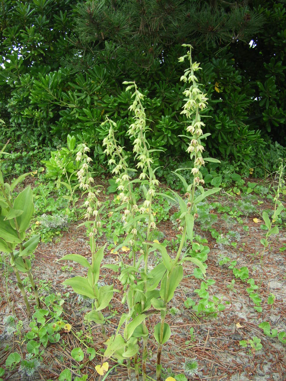 Found in the far eastern Russia, Korea and Japan in forests as a medium to large sized, cold growing terrestrial orchid with an erect stem, carrrying several, plicate, elliptic, basally clasping, graduating smaller towards the apex leaves and blooming on a terminal, erect, stout, shortly pilose inflorescence with many leaf-like bracts, and floral bracts carrying many flowers occuring in June to August. This orchid can be found only in a Pinus thunbergii forest at the Pacific Sea in Japan.