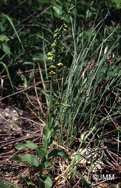 Found in the eastern Aegean Islands and Turkey in short grasslands, scrub, pine forests and open oak woodlands at elevations of 300 to 1500 meters as a small sized, cold growing terrestrial with thick, flexuous, pale green washed red at base and rather densely hairy towards the tip, erect stems carrying 7 or so, pale to dark green, more or less spirally arranged, clustered towards the base and then up to midway of the stem cauline leaves the lower ones broadly ovate-lanceolate, the median narrower and the upper grading to bracts that blooms in the later spring and early summer on a terminal, erect, near one sided, elongated, nearlax, to 40 flowered inflorescence