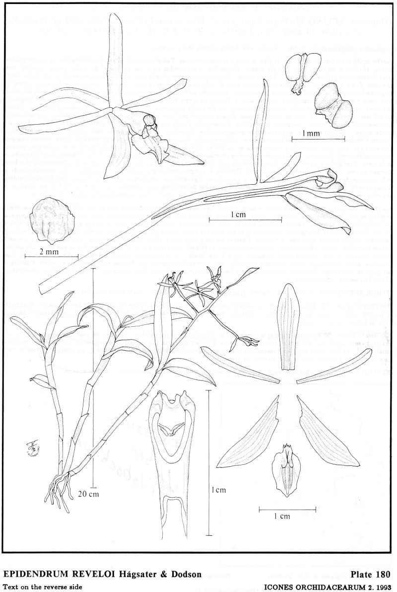 References W3 Tropicos, Kew Monocot list , IPNI ; *Icones Orchidacearum 2 Plate 180 Hagsater & Dodson 1993 drawing fide but actually represents E veroreveloi; Icones Orchidacearum 3 Plate 333 Hagsater & Sanchez 1999 see recognition section;
