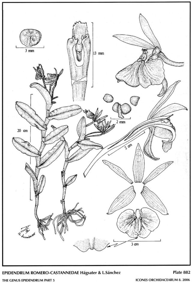 Epidendrum romero-castannedae Hágsater & L.Sánchez 2006 GROUP Difforme TYPE Drawing by © R Jimenez M and The AMO Herbaria Website