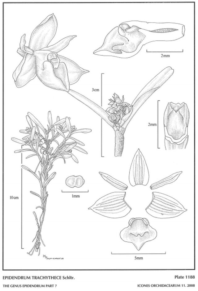 "Epidendrum trachythece belongs to the GROUP Ramosum which is characterized by the monopodial, branching