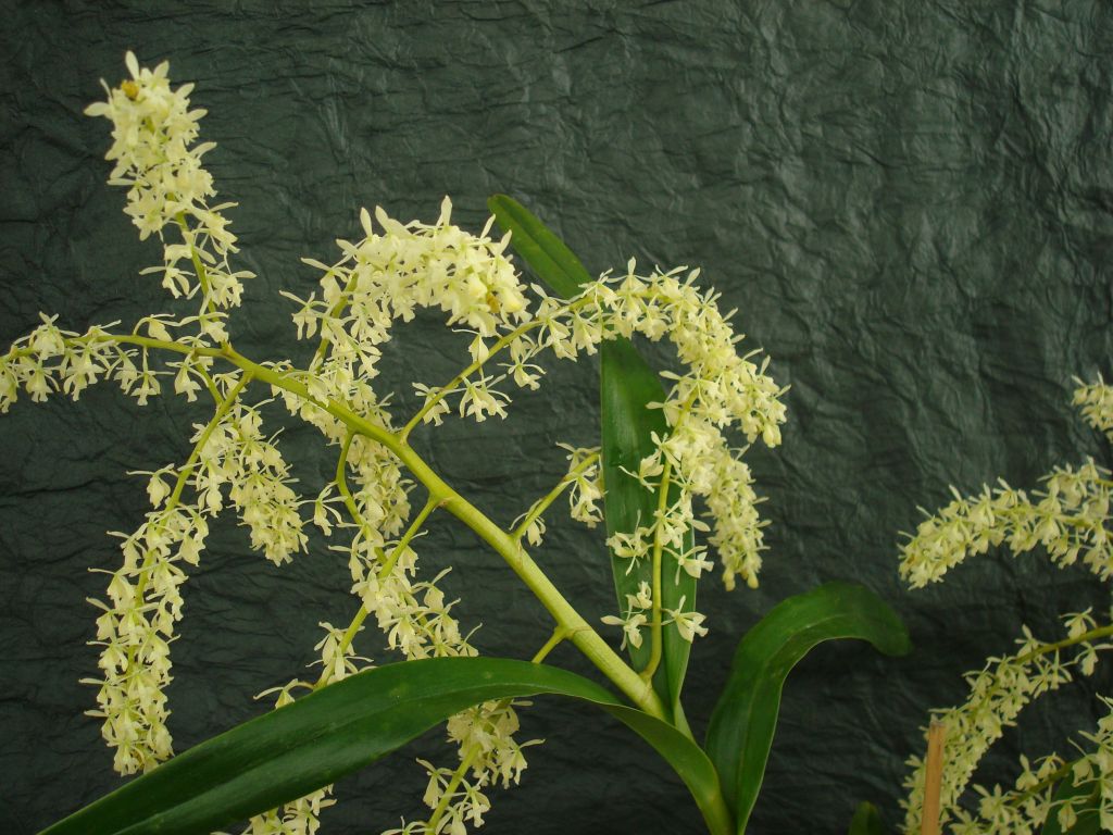 Found in Antioquia department of Colombia at elevations around 2200 meters as a medium sized, cold growing epiphyte with a flexuous, glabrous cane-like, thinly cylindrical, stem carrying 2, apical, erect-patent, narrowly ligulate, obtuse, fleshy-coriaceous leaves that blooms on a terminal, erect, somewhat compressed, to 16" [40 cm] long, arcuate, subdensely many flowered inflorescence arising through an elongate, ancipitous spathe with patent, deltoid, acute floral bracts.