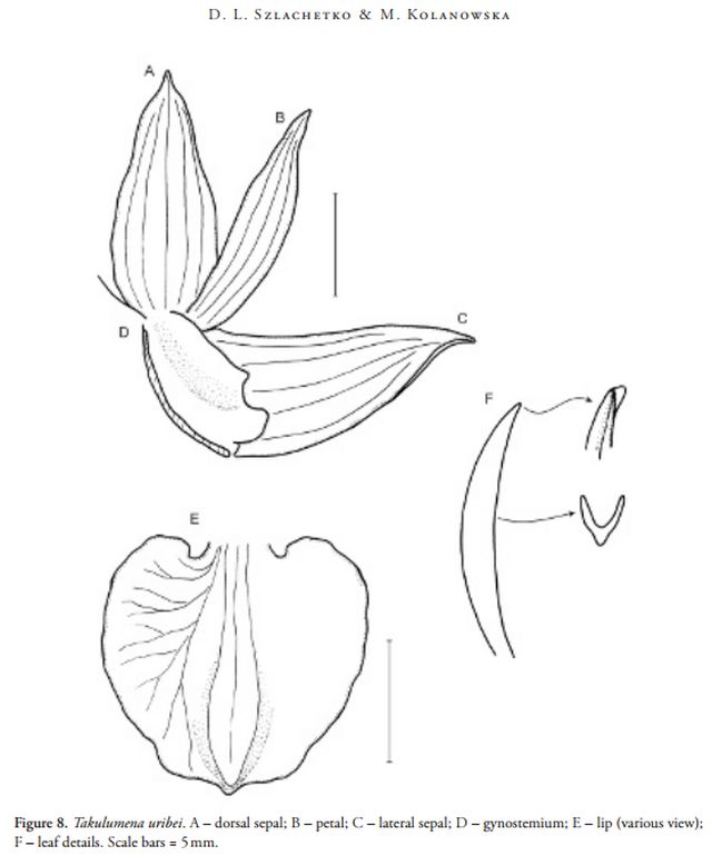 References W3 Tropicos, Kew Monocot list , IPNI ; Wulfenia 21: 73 Szlachetko & Kolanowska 2014 as Takulumena uribei drawing fide: